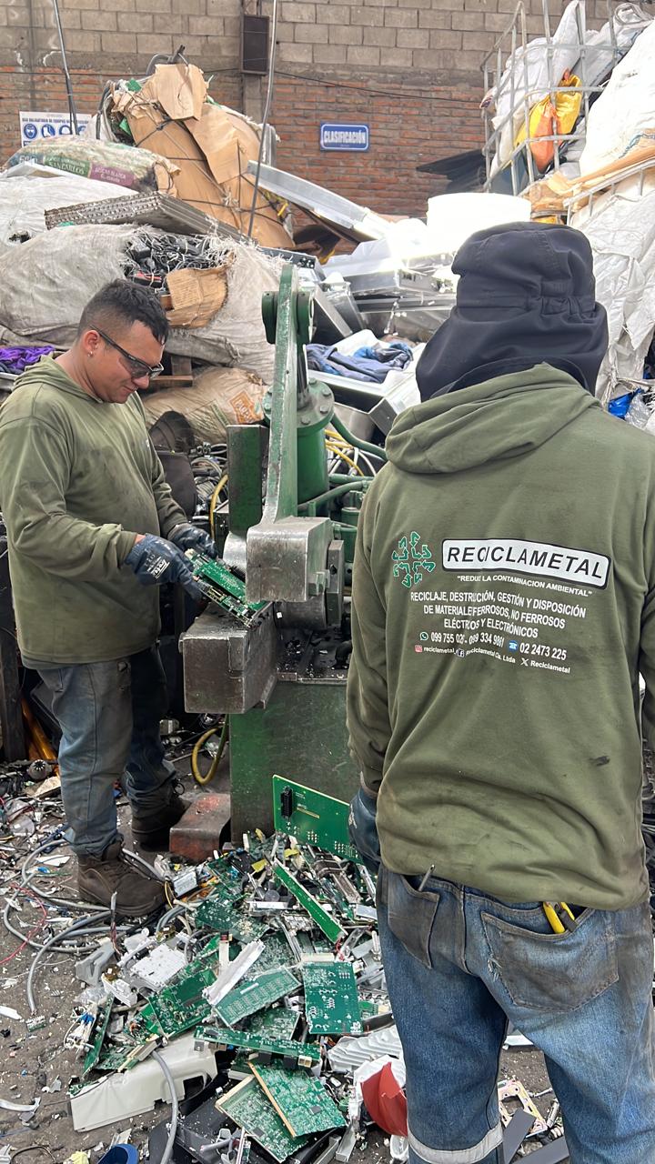 Desensamblaje y valorización de equipos electrónicos, metales, plásticos, baterías y otros residuos aprovechables.
